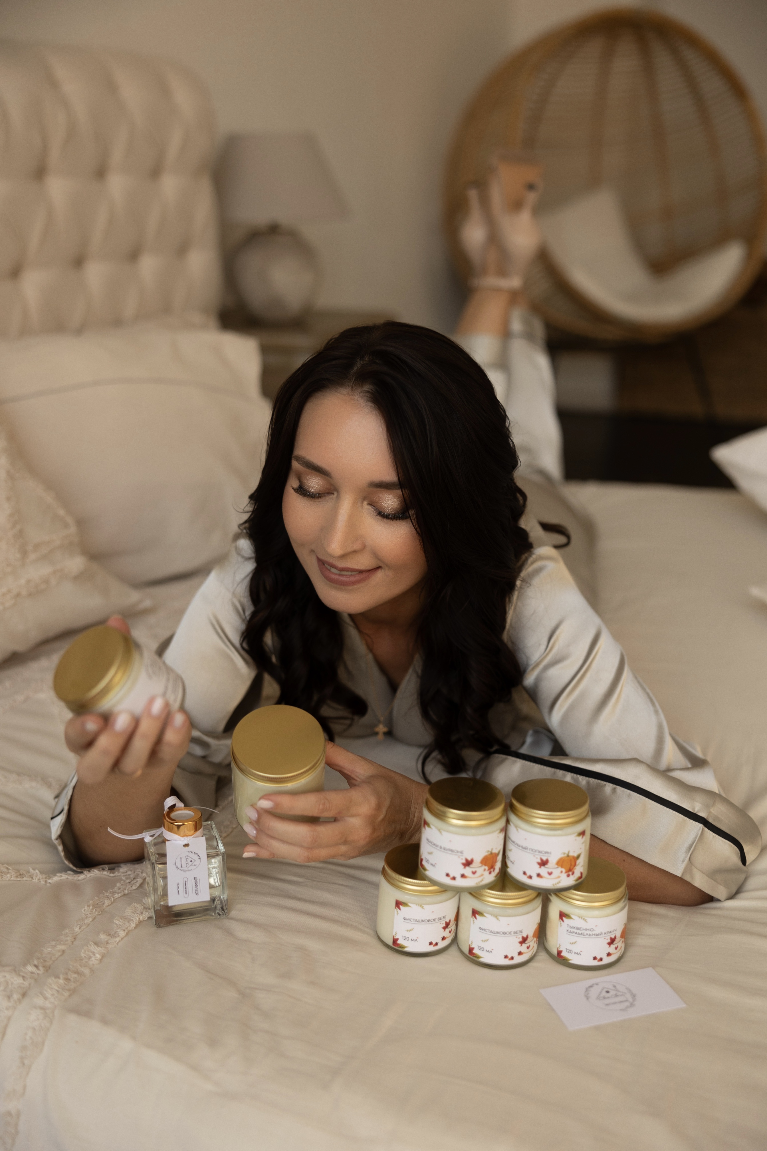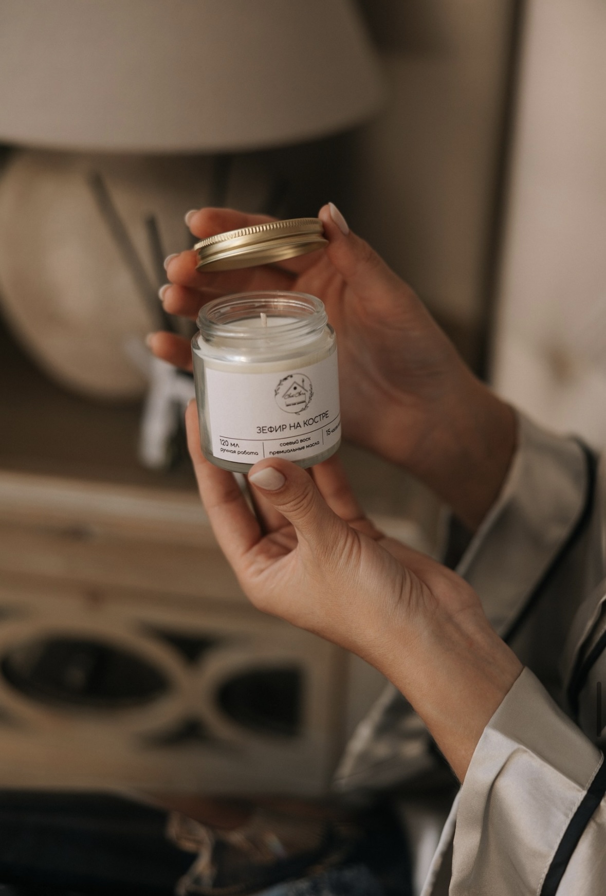 - Экологичных соевых свечах. Созданных из 100% натурального соевого воска, они горят чисто, долго и безопасно, наполняя пространство изысканными ароматами.